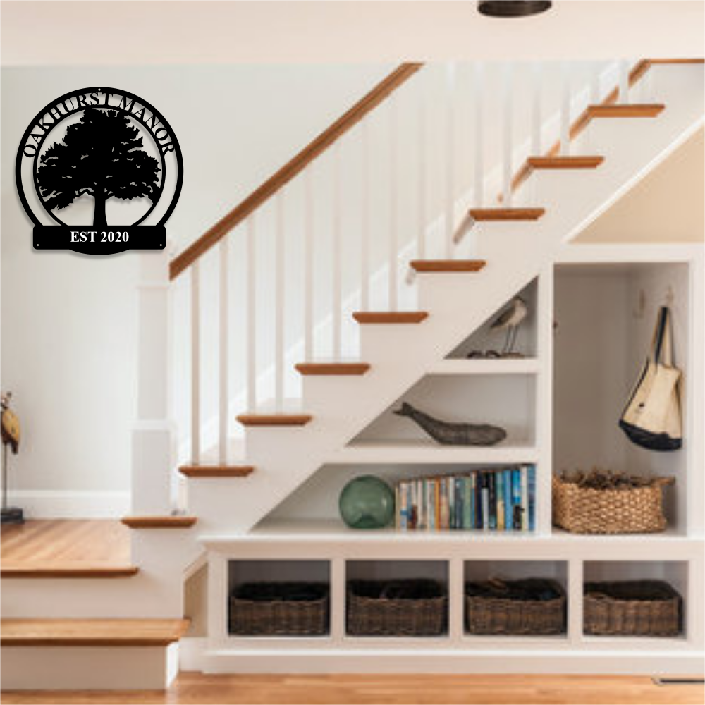 Round Oak Tree Monogram - Personalized Custom Metal Art Home Decor Monogram