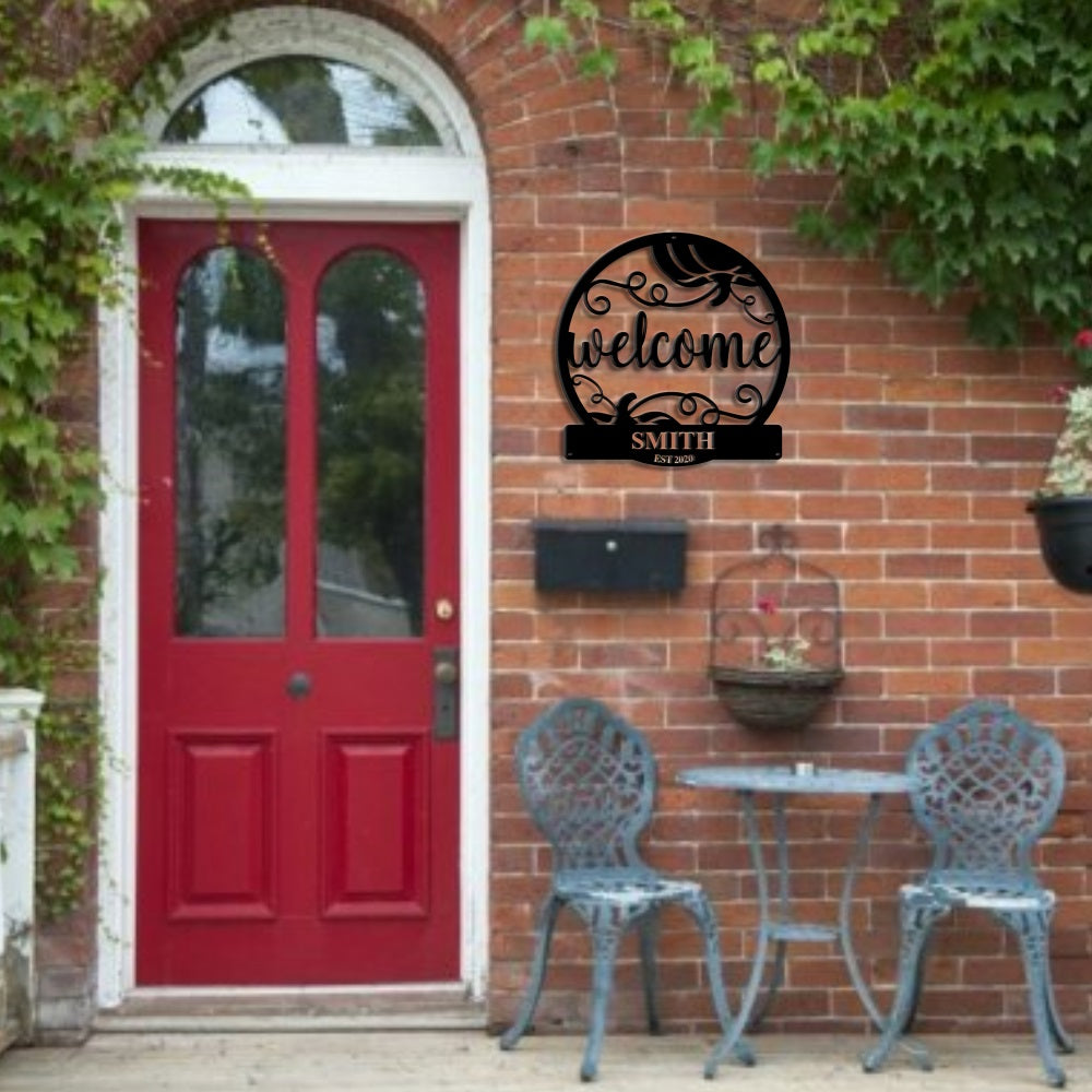 Round Pumpkin Welcome Sign with Custom Name & Established Date - Personalized Custom Metal Art Home Decor