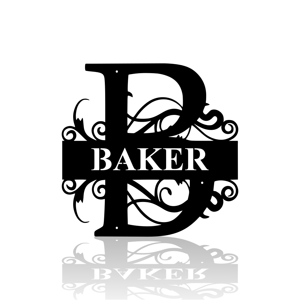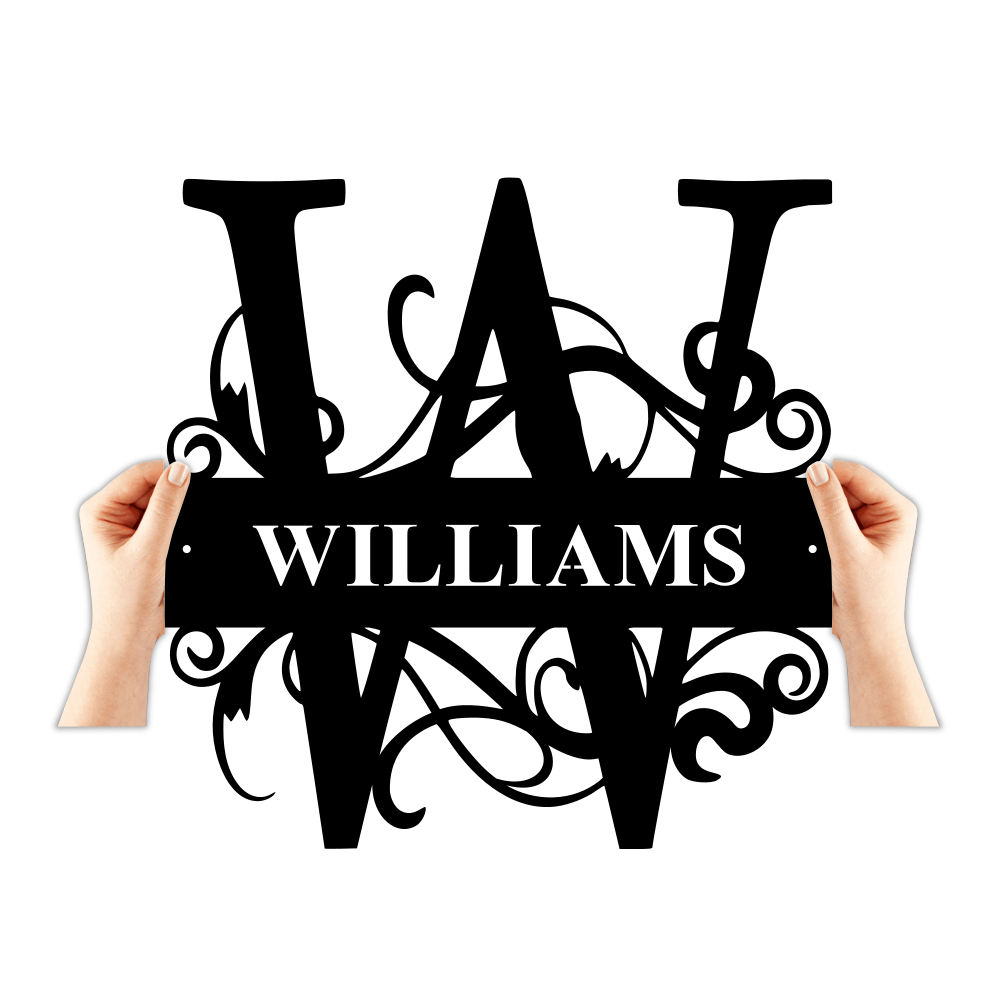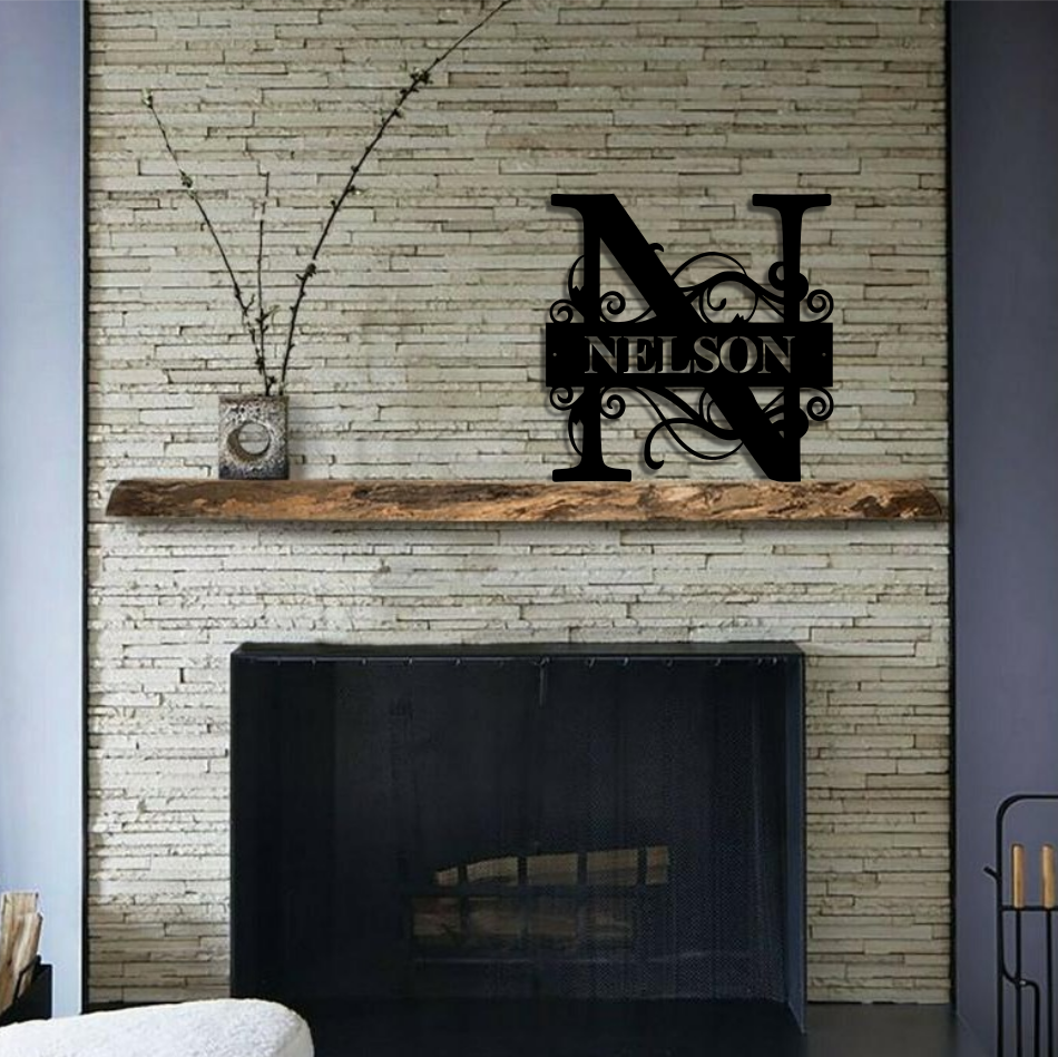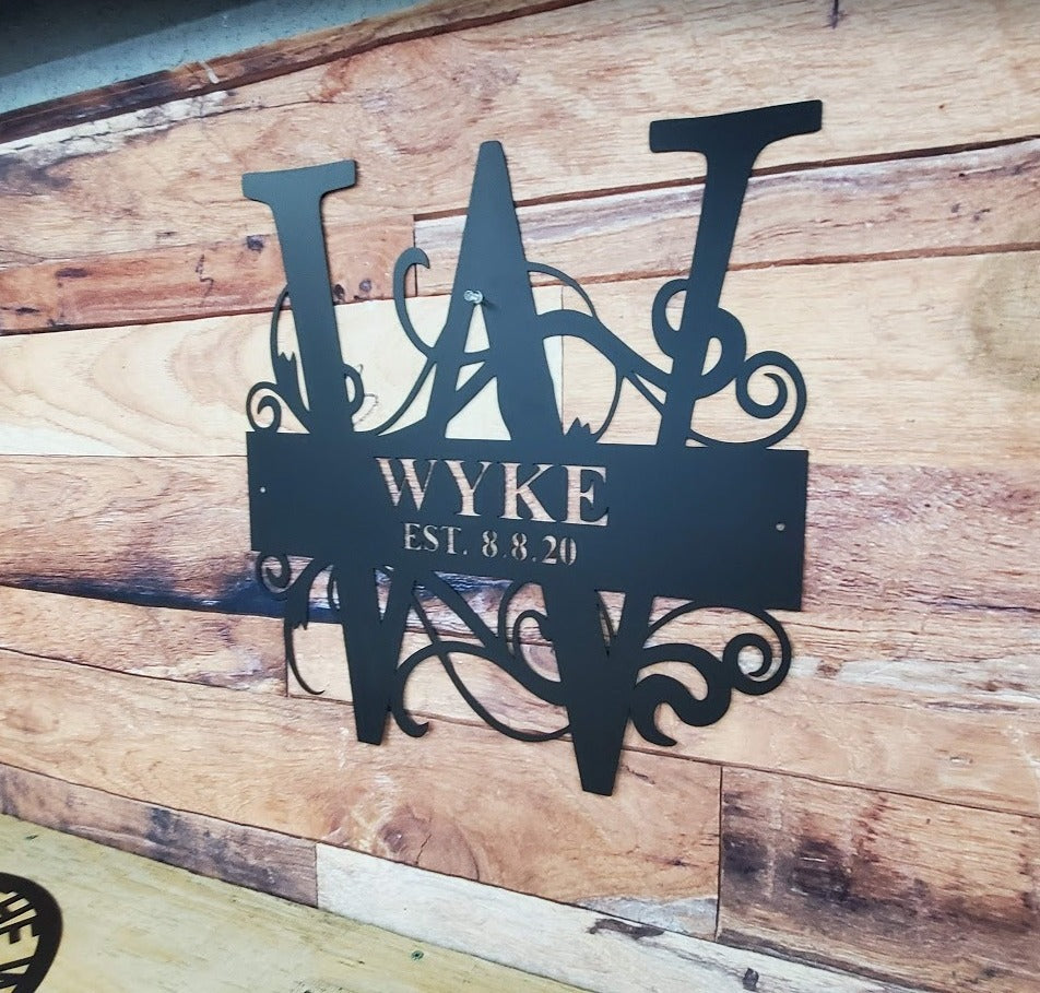 Fancy Split Monogram with Surname - Personalized Custom Metal Art Home Decor