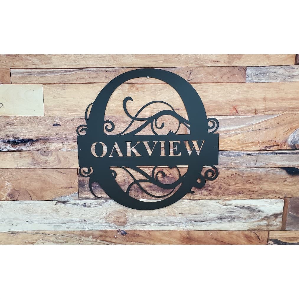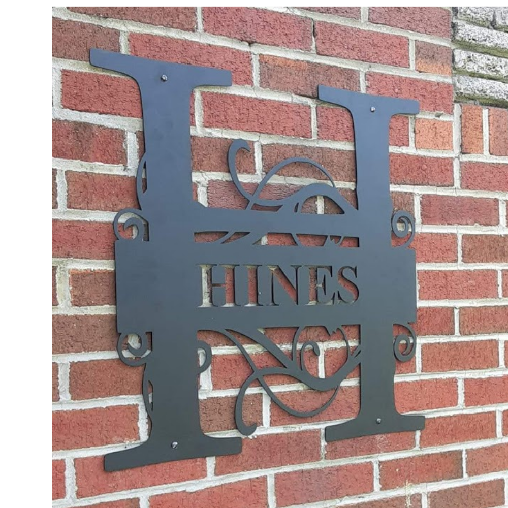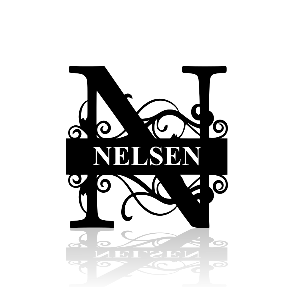 Fancy Split Monogram with Surname - Personalized Custom Metal Art Home Decor