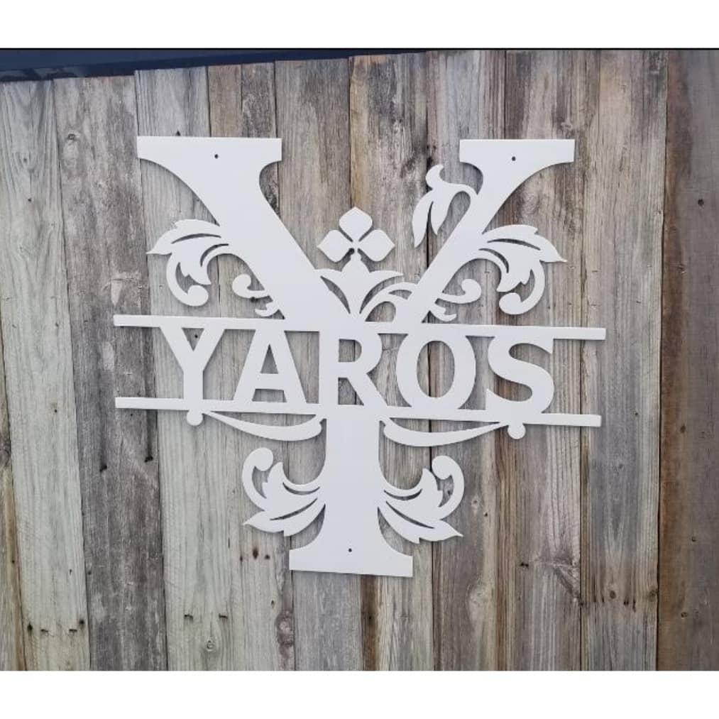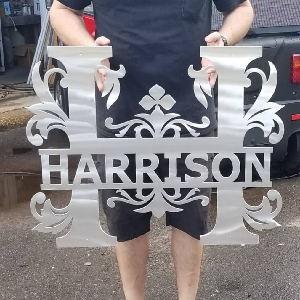 This is a classic style metal monogram that looks good almost everywhere. Each one is personally designed, laser cut and then hand prepped and powder coated. We have sold tens of thousands of these over the years and it proves to be the most popular style year over year.